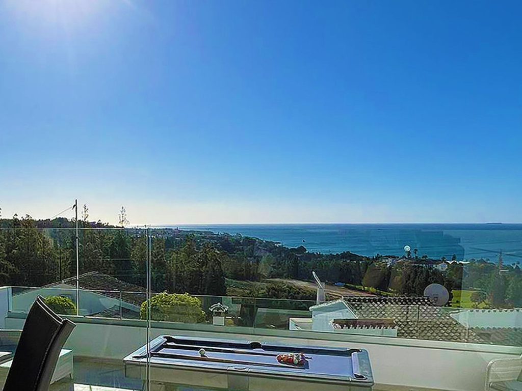 Un suave conjunto de escaleras proporciona acceso desde la puerta principal hasta la parte frontal de la casa, donde, a nivel del suelo, encontramos el primer apartamento. Una cómoda sala de estar con balcón conduce a una cocina totalmente equipada, dos dormitorios de buen tamaño y un baño. En el exterior, un segundo conjunto de escalones a la izquierda de la propiedad nos lleva a la piscina climatizada, enclavada en un rincón privado de la parcela y con vistas al mar en la distancia. Más allá de la piscina y las jardineras, llegamos a la parte trasera de la casa y la entrada al segundo apartamento. El vestíbulo nos da la bienvenida a una atractiva área de estar abierta con comedor a la derecha, una cocina con área de lavandería independiente a la izquierda y un salón espacioso y luminoso con un balcón estilo Julieta y una chimenea enfrente. El salón también se abre a una amplia terraza cubierta con vistas a los pinares, al campo de golf y al mar. En el lado opuesto, pasando por el comedor, encontramos 3 dormitorios dobles y 2 baños, uno de ellos en suite. A la derecha de la parcela hay una zona de relax con barbacoa, espacio para sentarse y entretenimiento en dos niveles. Un pequeño trastero, un estacionamiento cubierto y varios espacios de estacionamiento al aire libre completan la oferta.