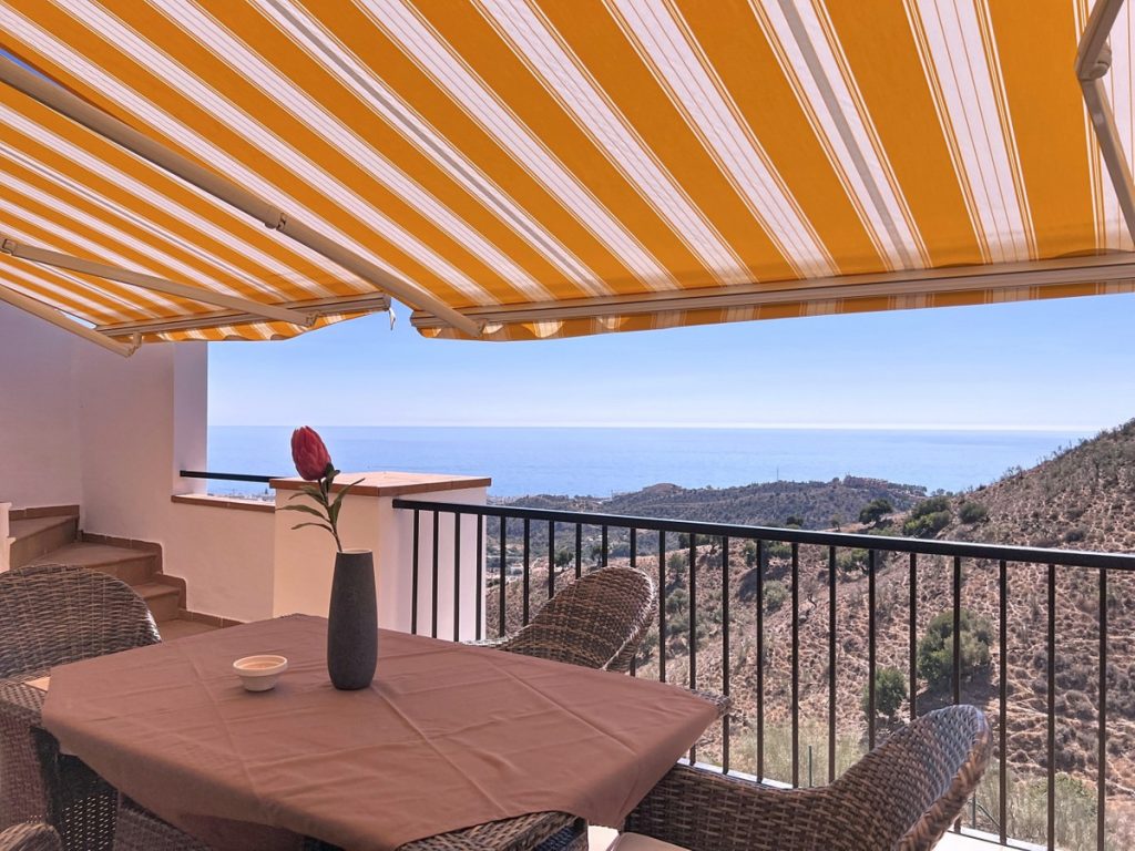 Moderno ático situado en una de las zonas residenciales más exclusivas de Rincón de la Victoria. Construido en 2015, esta propiedad ofrece una excelente combinación de confort, privacidad y diseño contemporáneo. La vivienda dispone de dos dormitorios y dos baños, incluyendo un dormitorio principal con baño en suite y acceso directo a la amplia terraza con vistas abiertas al mar. Uno de los baños cuenta con bañera de hidromasaje, y ambos disponen de suelo radiante. El luminoso salón-comedor se conecta a la perfección con la terraza, creando un espacio ideal para relajarse y disfrutar del clima mediterráneo. Desde la terraza se accede mediante una escalera exterior a un gran solárium privado, perfecto para tomar el sol, recibir invitados o disfrutar de las vistas panorámicas al mar. La propiedad cuenta con aire acondicionado con bomba de calor, mosquiteras en todas las ventanas, caja fuerte empotrada y sistema de alarma. La urbanización está completamente vallada y asegurada, y ofrece excelentes zonas comunes con tres piscinas y dos pistas de pádel, rodeadas de jardines bien cuidados. Se incluyen dos plazas de aparcamiento privadas y un trastero. Ubicación inmejorable: a solo 20 minutos de Málaga y 30 minutos del aeropuerto internacional, con la playa y todos los servicios a pocos minutos. Este ático es ideal tanto como residencia habitual como segunda vivienda en la Costa del Sol. Estamos encantados de poder presentar esta propiedad a usted pronto, ya sea personalmente o a través de la visión virtual. Porque este mundo, es único – como nuestra Axarquía. En Andalucía. En la Costa del Sol. Aquí, en el lado soleado de la vida…