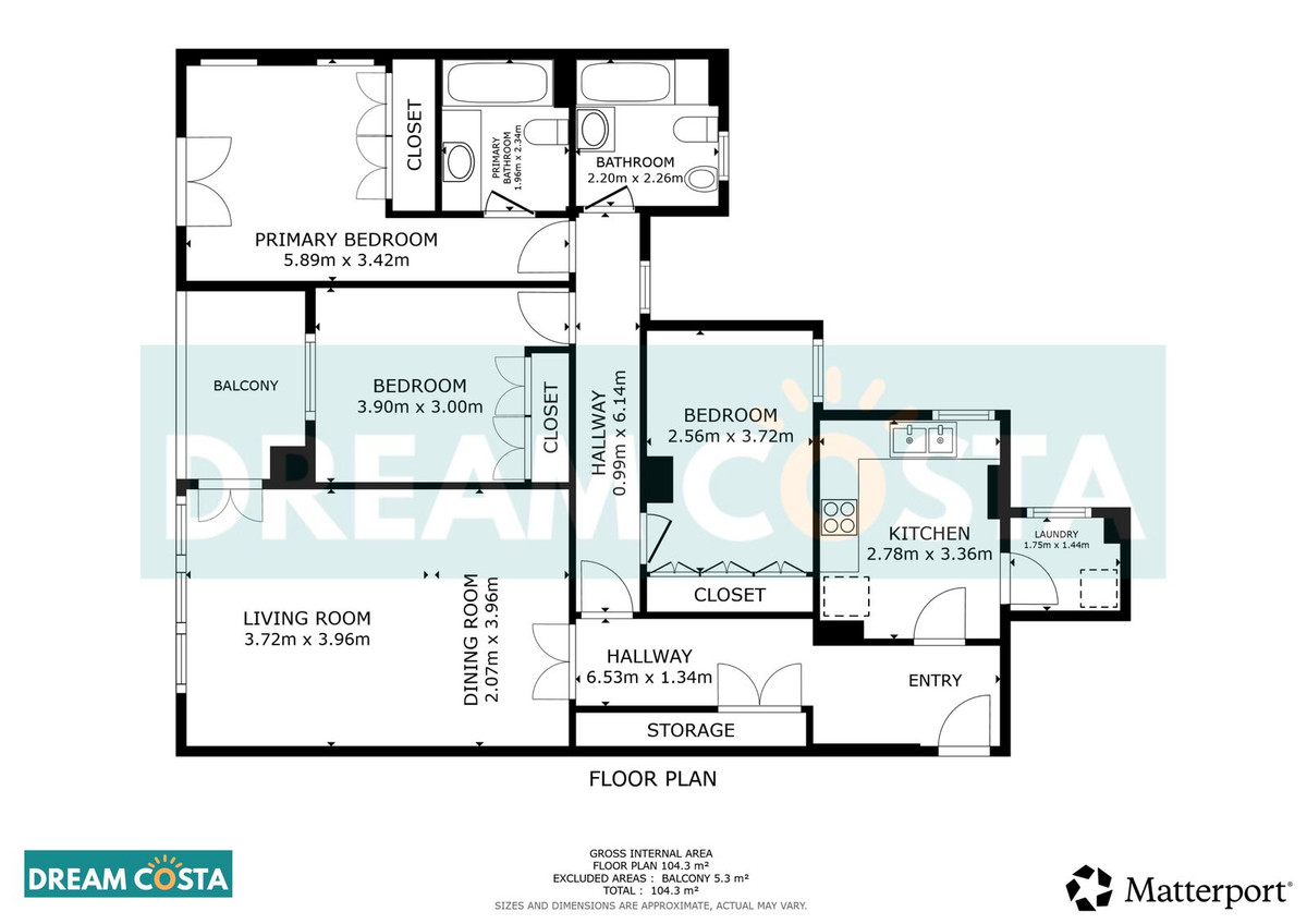 * Dos dormitorios dobles adicionales, uno exterior y otro interior, ambos con armarios empotrados de suelo a techo.