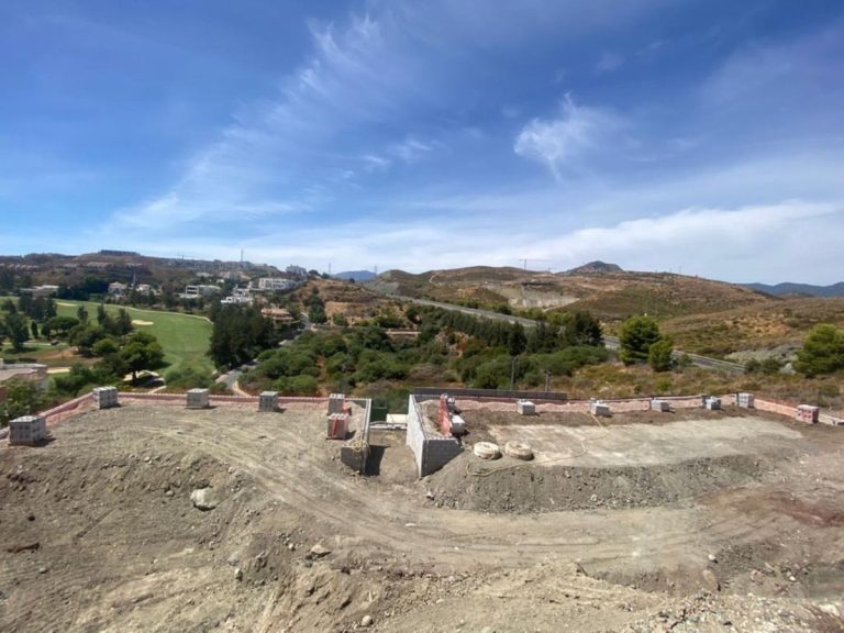 Se vende suelo para la construcción de una villa de lujo independientes, con proyecto, licencia, obra ya iniciada y los muros construidos, en una de las mejores zonas de Benahavis, La Alqueria, en una urbanización cerrada, en primera línea de golf y con vistas al mar. VILLA B12 – PARCELA
